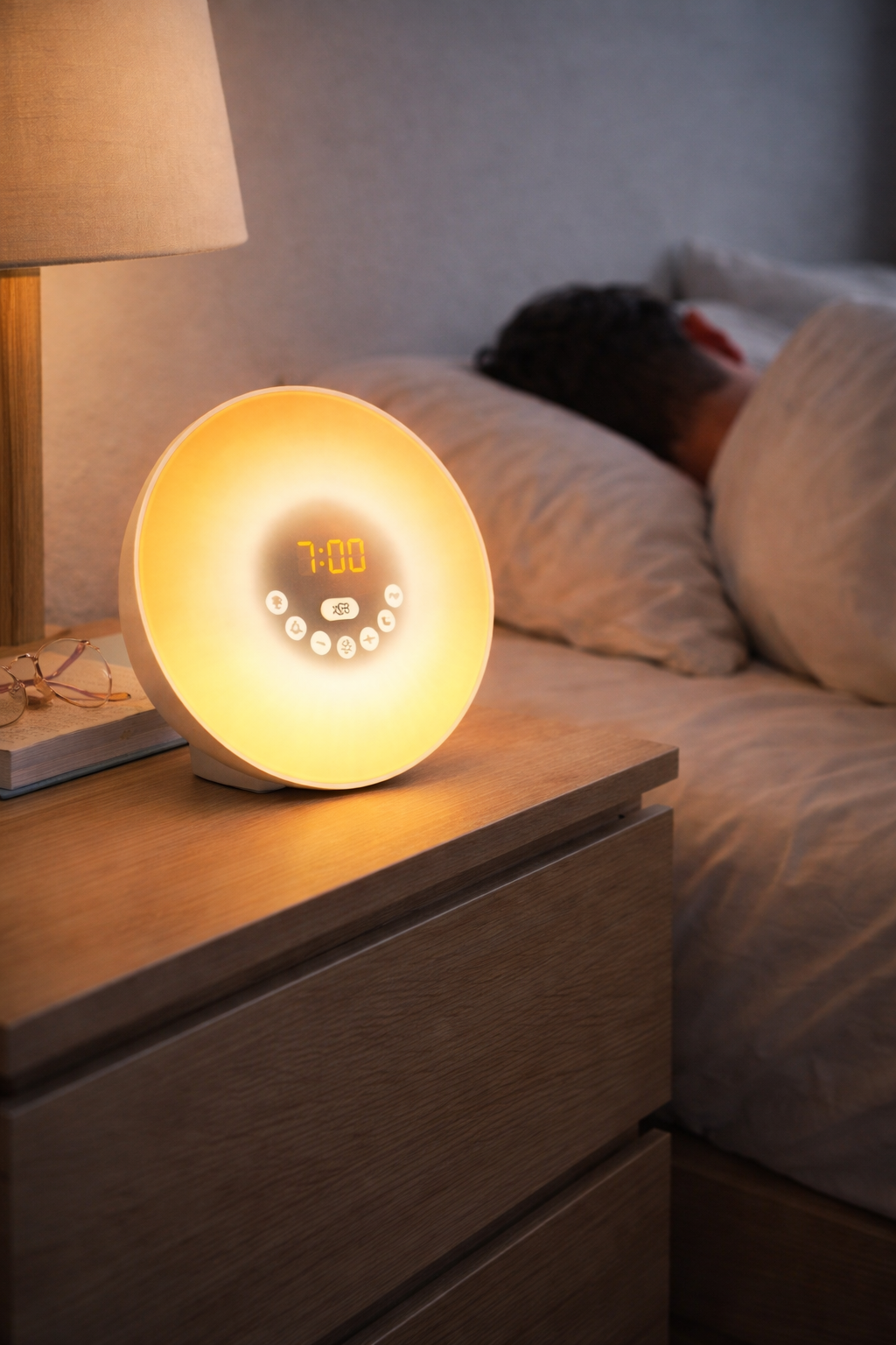Une expérience de réveil totalement différente. La lumière progressive crée une ambiance douce et apaisante, idéale pour commencer la journée sereinement